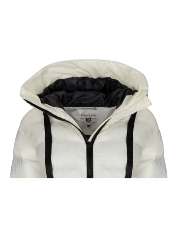 – wärmeisolierend– atmungsaktiv– Kapuze: mit Tunnelzug– Kragen: Stehkragen– Verschluss: Reißverschluss– Eingrifftasche(n): 2– Detail(s): Applikation(en)– Steppung: ja– Schnitt: gerade– Muster: Uni