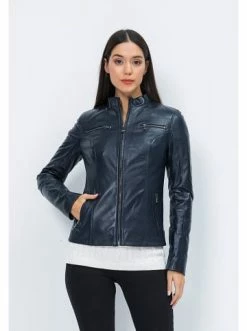 – Kragen: Stehkragen– Verschluss: Reißverschluss– Tasche(n): Reißverschlusstasche(n)– Schnitt: schmal – Muster: Uni– Pflegehinweis: Lederspezialreinigung