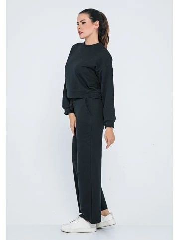 Im Outfit enthalten:– 1 Sweatshirt– 1 SweathoseSweatshirt:– Ausschnitt: Rundhals– Rippstrick: Ausschnitt, Ärmelabschluss, Saum– Schnitt: locker– Muster: UniSweathose:– Bund: Tunnelzug– Tasche(n): Eingrifftasche(n) – Schnitt: locker– Muster: Uni