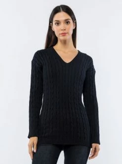 – reine Baumwolle– Ausschnitt: V-Ausschnitt– Rippstrick: Ausschnitt, Ärmelabschluss, Saum– Schnitt: gerade– Strickmuster: Zopf– Muster: Uni